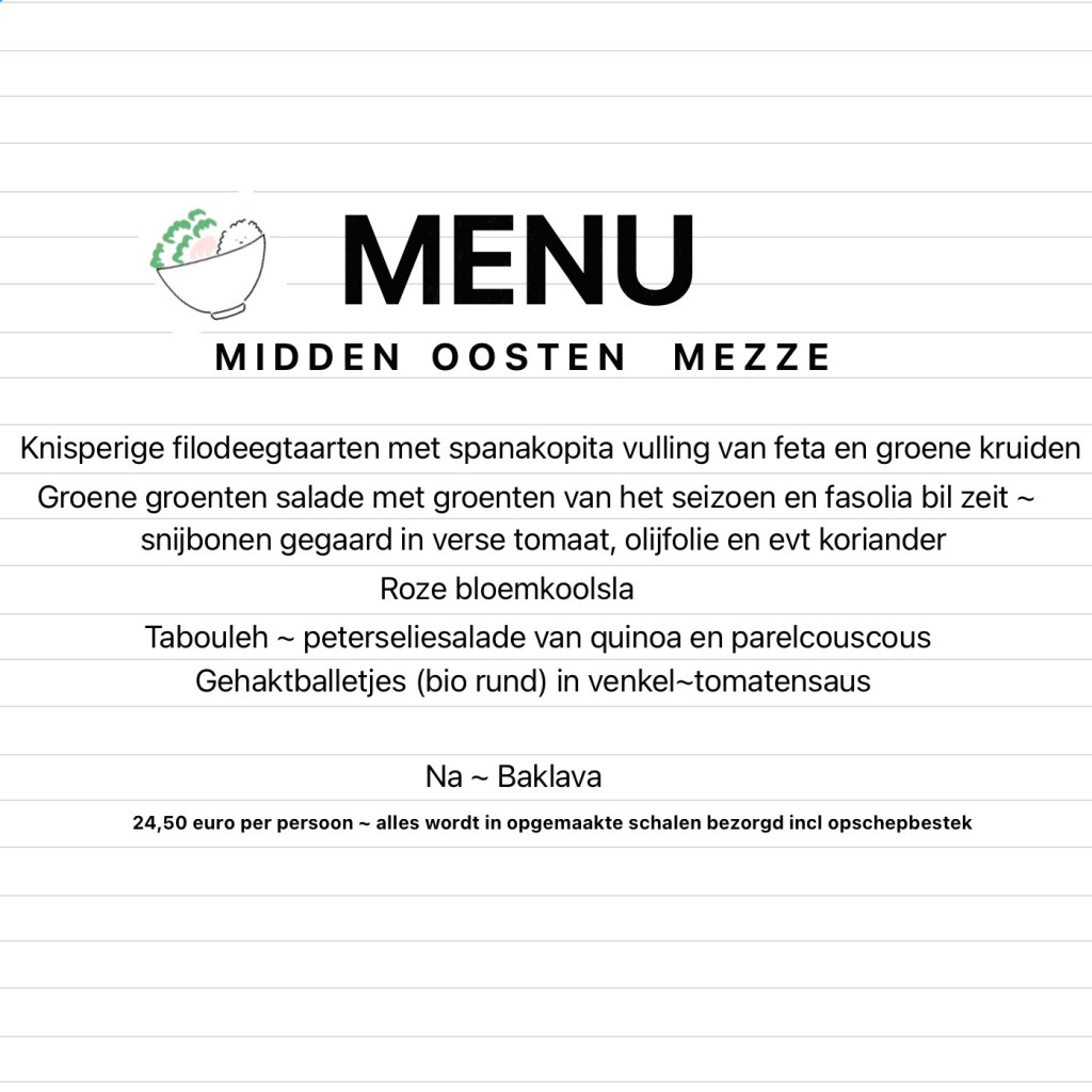 Naast de vaste bezorgdag op vrijdag, bezorg ik ook anytime buffetten ~ shared dining ~ of ready to eat bowls op aanvraag
