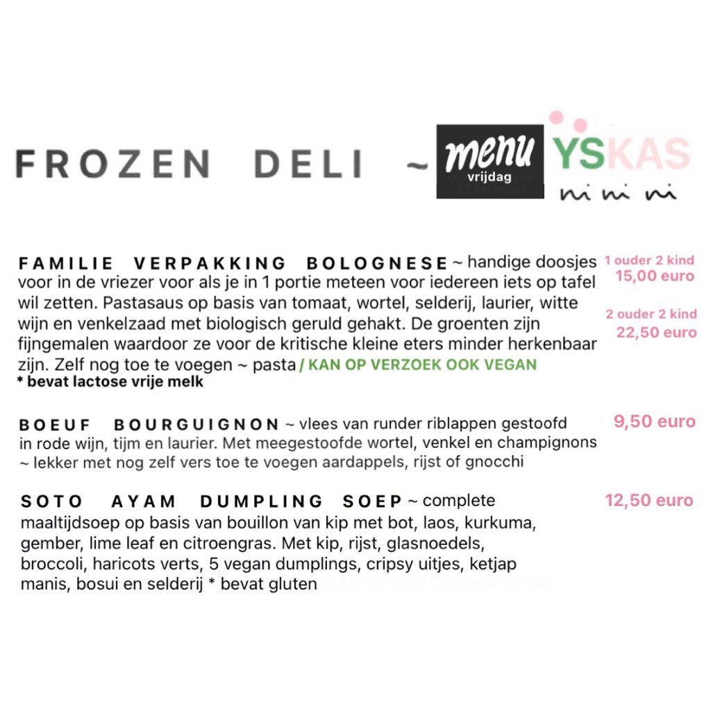 vrijdag 27 februari ~ let op: ivm voorjaarsvakantie heb ik een enkel frozen deli menu deze vrijdag